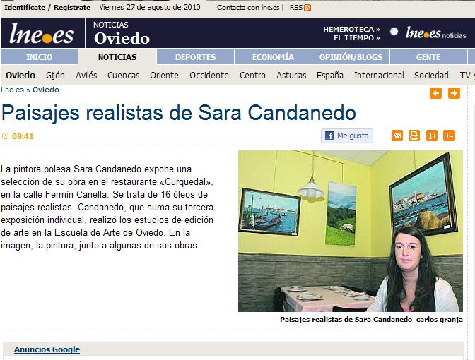 - 27/8/2010. La Nueva España.es. Paisajes realistas de Sara Candanedo en el Restaurante Curquedal de Oviedo. Tercera exposicion individual. [Leer +]
